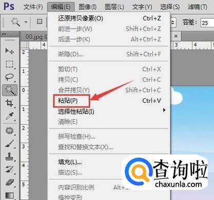 点击拷贝之后在选择另外的一张图片,然后再在编辑菜单里找到粘贴选项,如图所示: