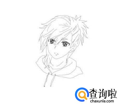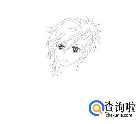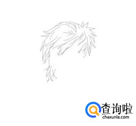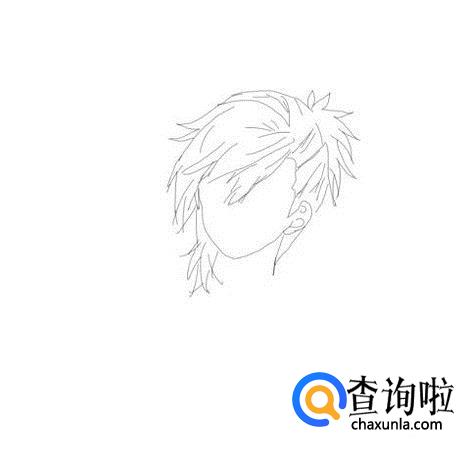 先画出男生的头发,再在面部的前面画出男生的刘海,如图所示: