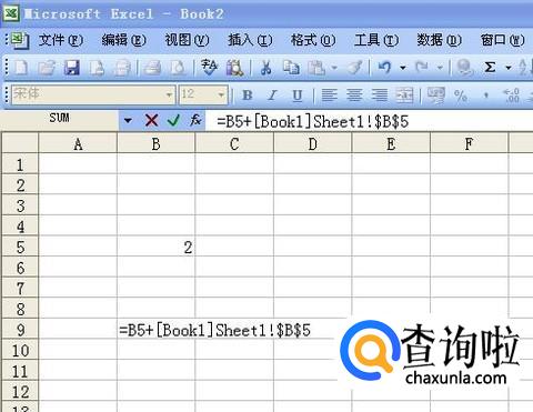 当我们想在第二个工作表中算出这两个数值的和时,可以在单元格中输入等号,然后用鼠标点一下2所在的单元格,再输一个+号。