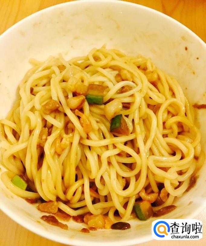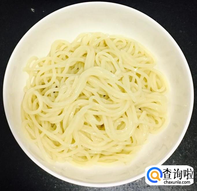 控干水分盛入碗中浇上炸好的酱搅拌均匀,开始享用美味可口的炸酱面吧!
