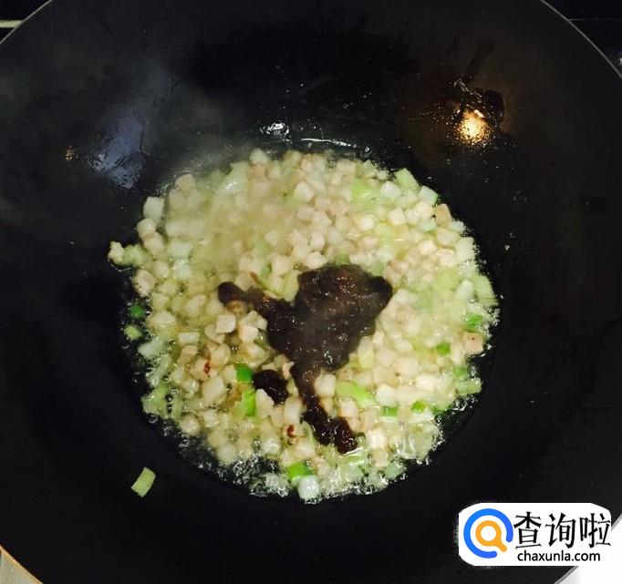 根据自己的喜好放入适量的豆瓣酱,改中小火把豆瓣酱炒香