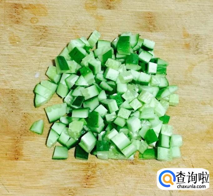 黄瓜一根清洗干净后切去两端后切成小丁备用