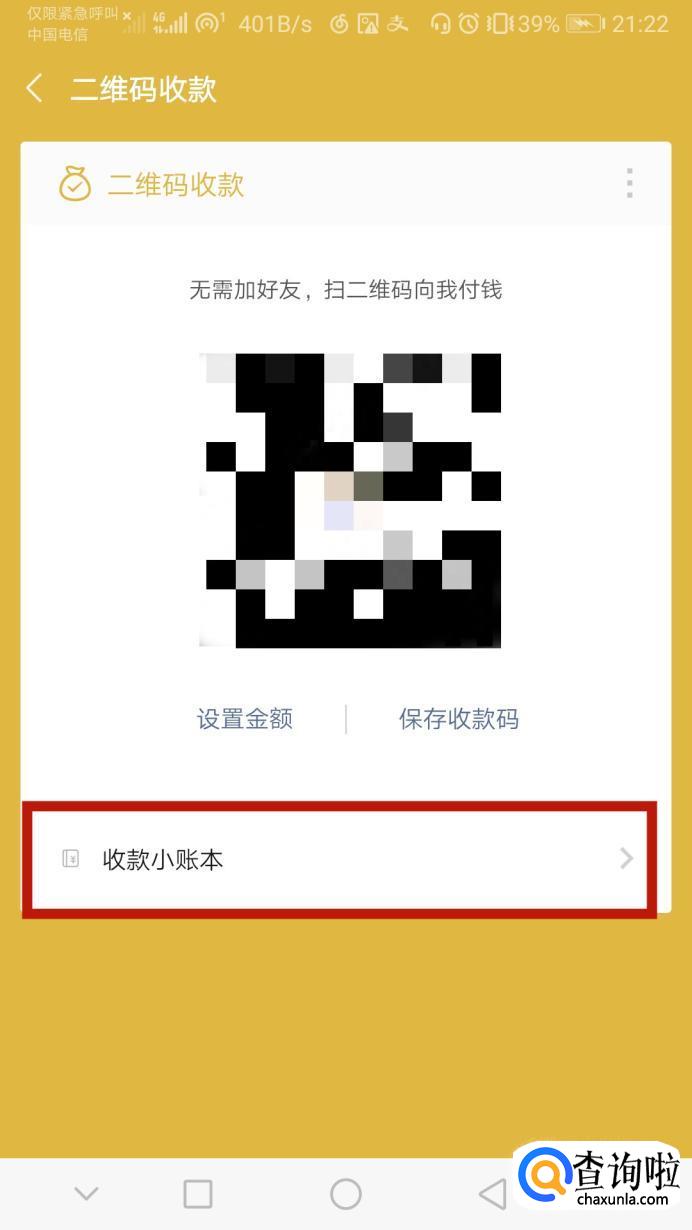 然后点击我的收款码,再点击收款码下方的收款小账本。