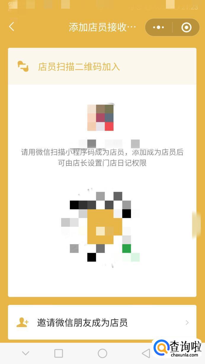 然后就会显示一个二维码可以扫描,我们只需要让被添加的店员扫描这个码即可成功添加。