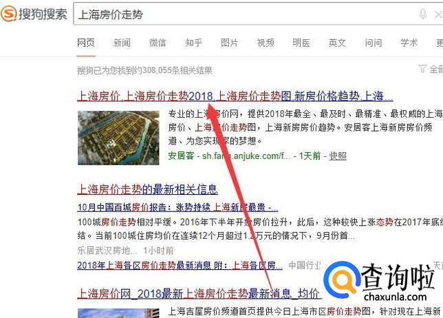 进入之后,搜索【地名+房价走势】,点击并进入,如图所示。