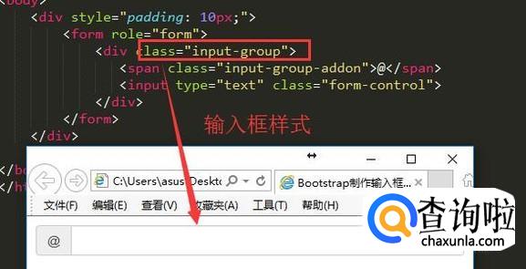 然后我们调用input-group样式来让输入框组中的元素在同一行,如下图所示