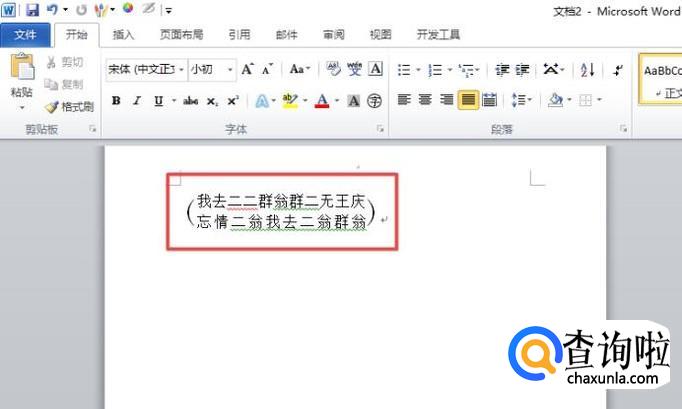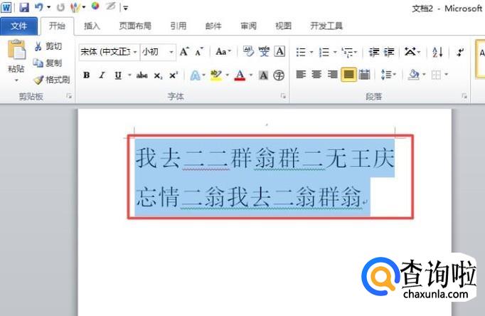 首先,我们打开一个word文档,然后我们选中两行文字;