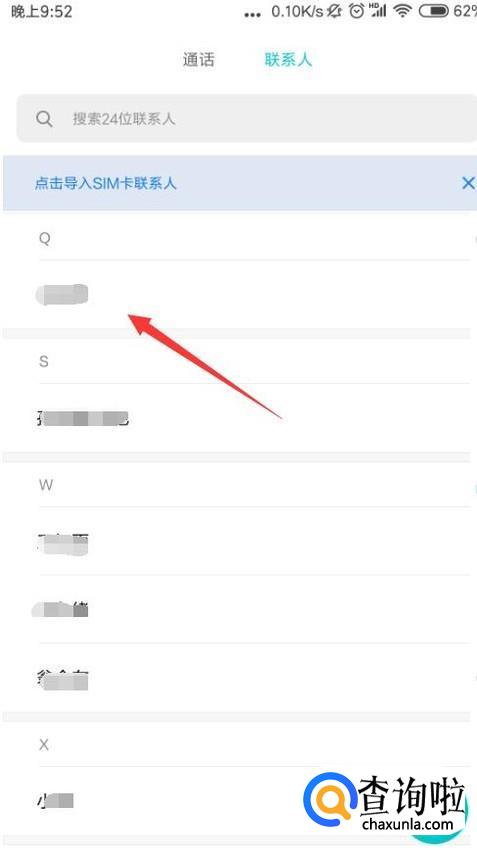 进入联系人列表界面后,找到我们需要视频通话的联系人