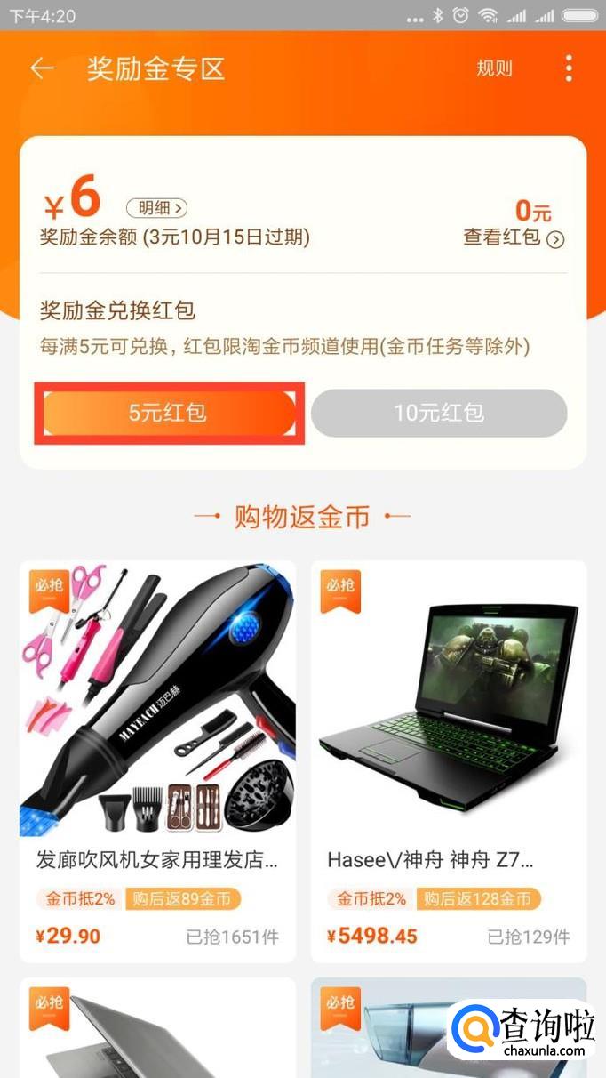 接下来就是将你的奖励红包兑换成现金红包,确认兑换,这时候就可以在购物时当做现金进行抵扣了。