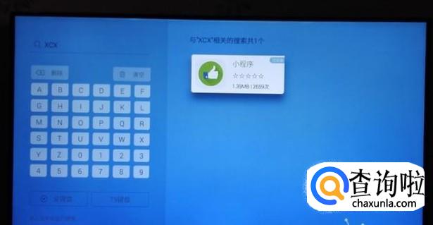 选择搜索后会出现搜索页面,将U盘连接电视USB接口,然后输入"xcx"下载安装小程序。
