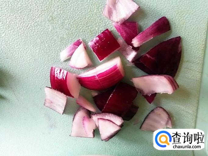 从冰箱取适量的小火腿肠化一会,再切半个洋葱备用。如图所示。
