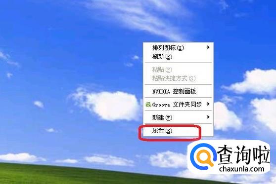 另外,我们也可以右键单击桌面,如图所示,选择“属性”。