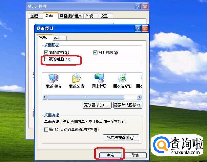 如图所示,勾选“我的电脑”前面的复选框,点击确定,就能找回桌面上的“我的电脑”图标了。