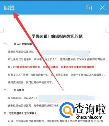 进入之后,我们是以阅读模式进行查看的,点击左上角的编辑,如图所示。