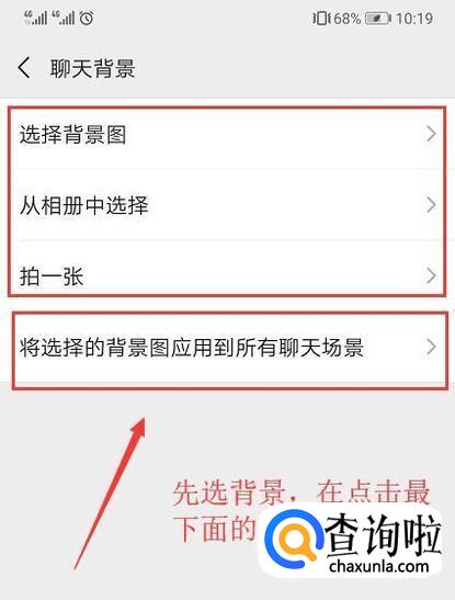 接下来会进入设置背景的界面,首先需要选择背景图,从下图中前三个选项选择一种方式,选择好以后注意点击一下第四个选项,否则一些单独设置的背景不会改变