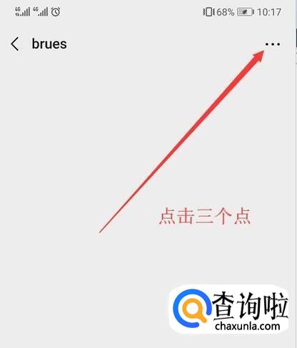 首先打开一个好友的聊天界面,点击右上方的三个点,如下图所示