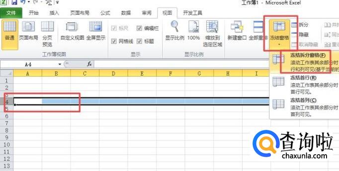 想要固定前几行的话,我们就选中其中最后的那一行,然后点击冻结窗口的下拉箭头,弹出的界面,我们点击冻结拆分窗口;