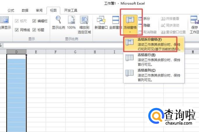 然后我们根据我们的需求进行选择冻结前几列,我们就选中最后的那一列,然后点击视图;
