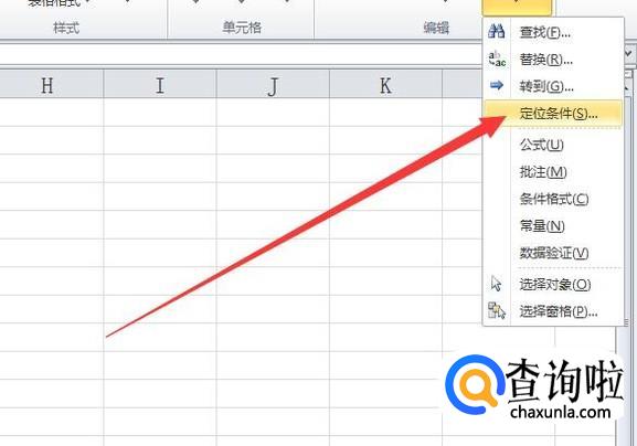 打开快捷菜单之后,点击“定位条件”,如图所示。