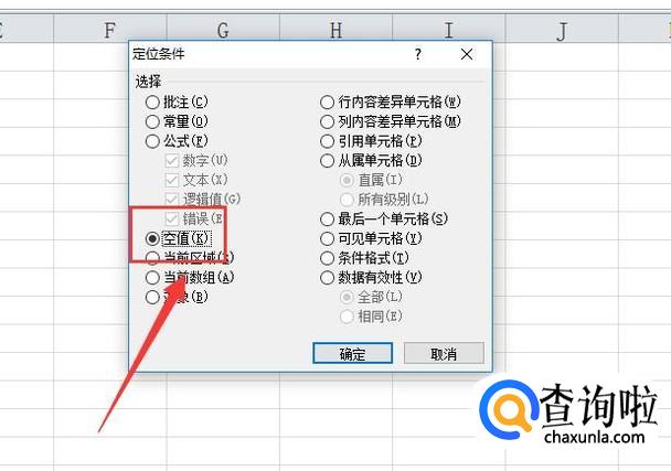 进入之后,点击“空值”,然后选择“确定”,如图所示。