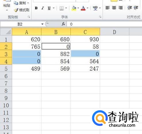 此时所有的空单元格全被选中,输入要填充的数字“0”,按ctrl+enter组合键完成即可,如图所示。