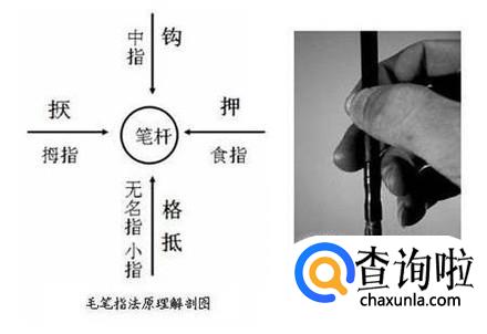 在学习毛笔字之初,最重要的就是先学会用笔,下图所示即为较为常见的几种指法介绍。