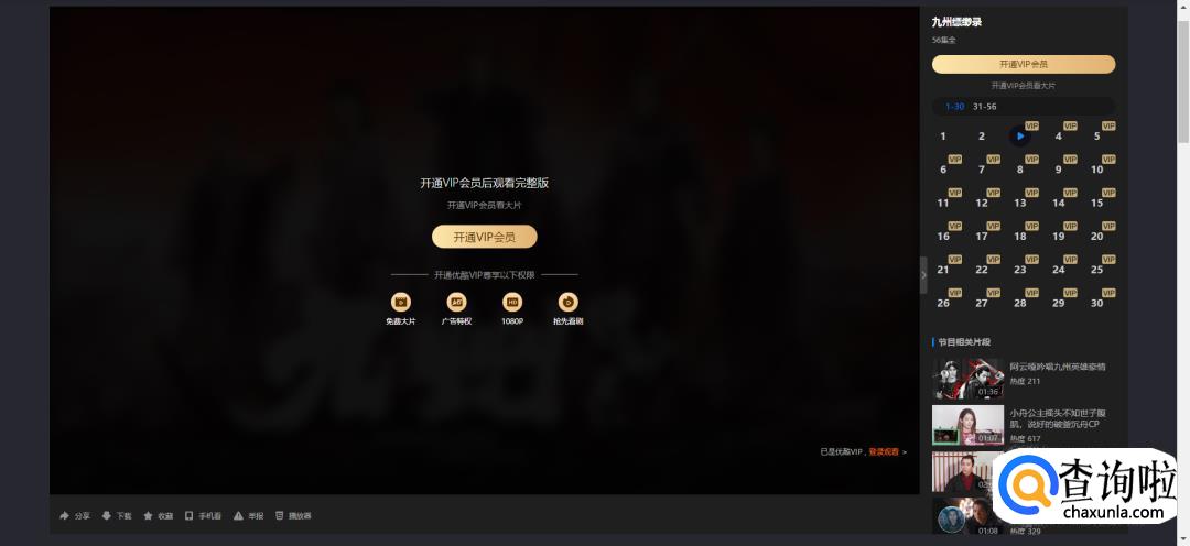 打开VIP视频会提示你需要购买会员才能观看,如图所示。