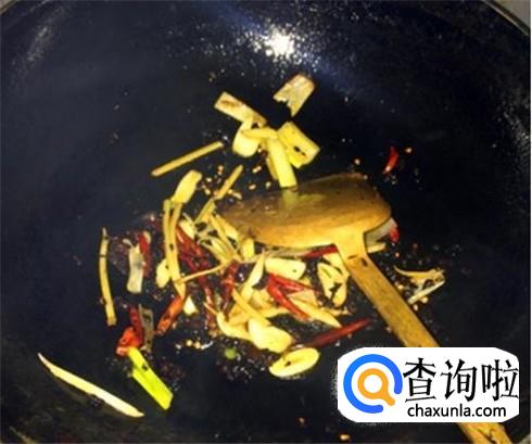 锅里倒一些食用油,记得不要太多,一点就可以,烧热之后把生姜片以及红辣椒和蒜瓣放进去炒出香味,把皮皮虾放进去翻炒。