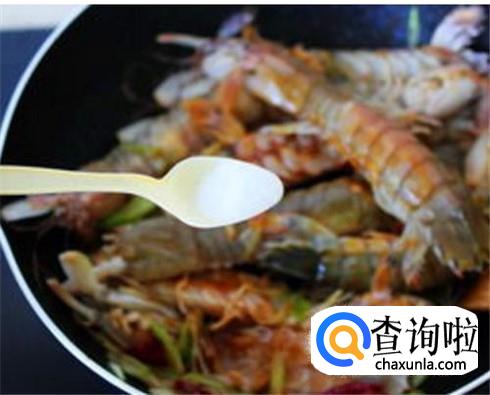 加入一小勺子生抽,一点点食盐翻炒,皮皮虾变色并炒熟之后撒上葱花就可以出锅了。