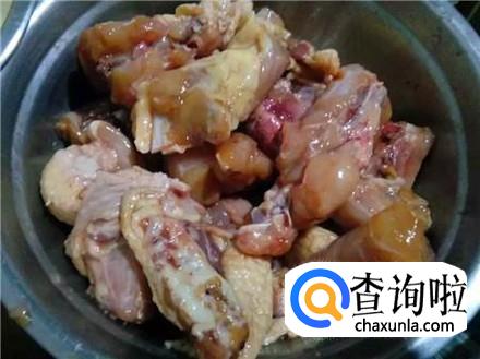 鸡架清洗干净,剁成块状,放在冷水中浸泡半小时,然后用冷水多次冲洗,把血水全部洗干净并控干水分。