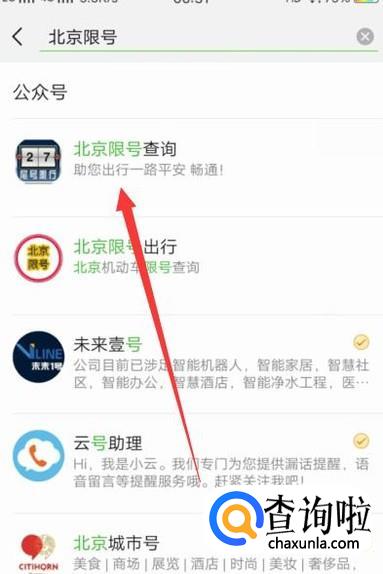 进入之后,搜索“北京限号”,点击并进入,如图所示。