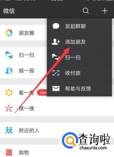 进入之后,点击图示位置的“+”,选择“添加朋友”,如图所示。