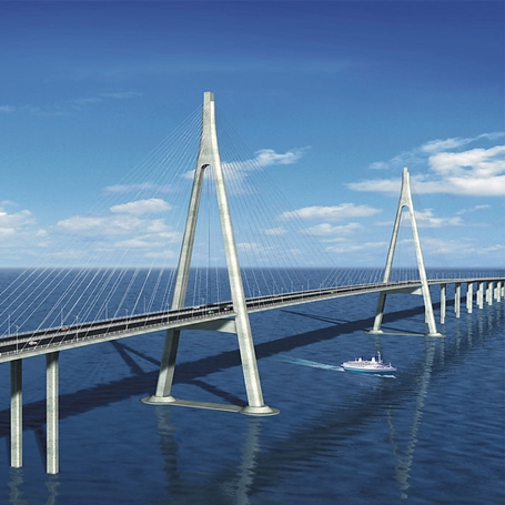 跨海大桥是跨越海湾、海峡、深海、入海口或其它海洋水域的桥梁,一般有较长跨度和线路,短则几千米、长则几十千米;由于大桥深入海洋环境,自然条件复杂恶劣,所以跨海大桥能体现桥梁工程的顶级技术。一些跨海大桥比较长,通常由多个桥中桥组成; 为避免影响水上航道或空中航线,跨海大桥中的某一部分也可能采用海底隧道工程,集“桥、岛、隧”为一体。
