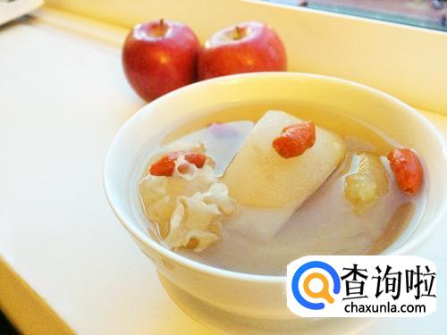 将银耳泡发,除去黄色硬蒂,剪成小朵。苹果、雪梨去皮,切成小块。将这几味食材一起放入锅内,大火煮开,最后将枸杞放入,用盖子焖约几分钟,一道苹果雪梨糖水就做好了。这道糖水非常适合秋冬季节干燥的天气,常喝对皮肤也极有好处。