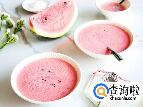 将西米洗净放入锅内煮至透明关火,焖上几分钟,待西米中间的小白点消失,捞起过冷水几遍,放入干净容器备用。然后把半个西瓜肉挖出、放入蜂蜜和牛奶搅拌成汁,倒出装入碗内。将西瓜汁和西米露混合搅拌均匀,这样整个碗内就会看到粉红色透明的西米露了,这道糖水非常适合夏天哦,不仅清热解暑,美白滋润的功力也是一流哦。