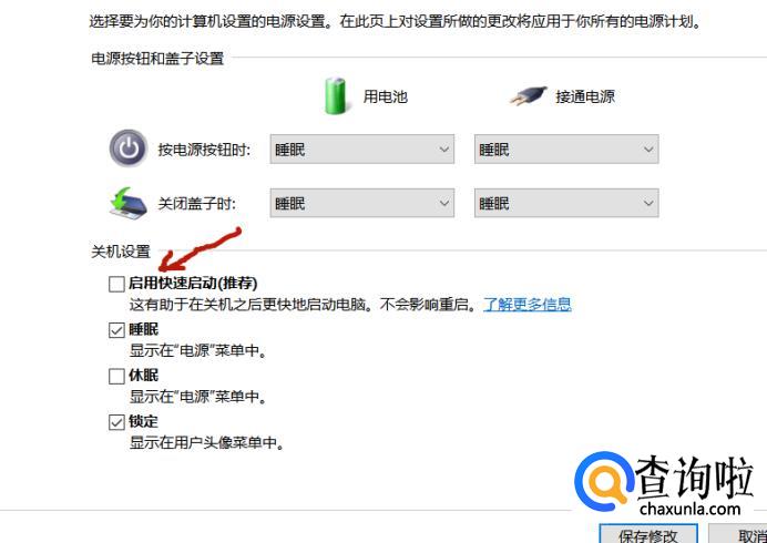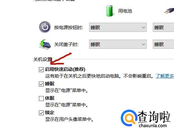这里截出系统原来默认选项,在启用快速启动(推荐)前面是打√的。