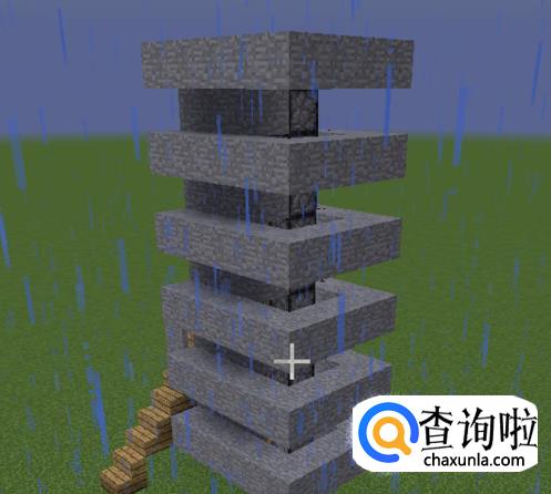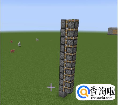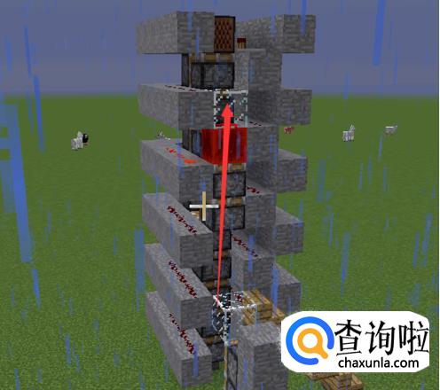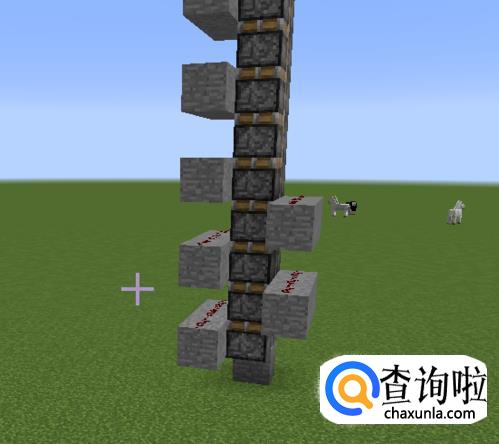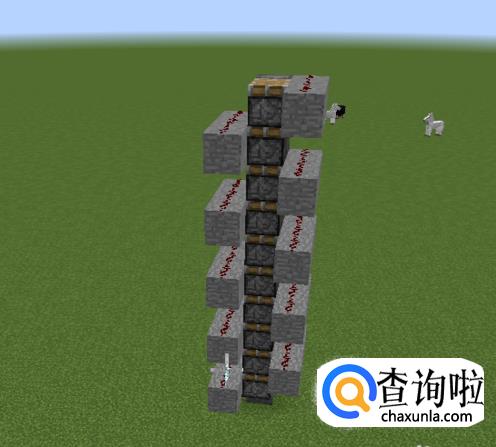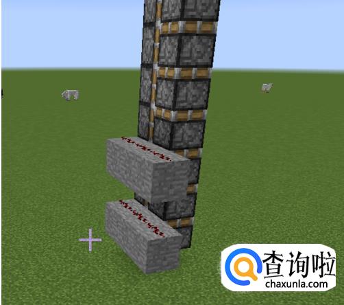 首先我们在第一格放一个石头,然后石头上方放置粘性活塞,粘性活塞个数随意,根据我们的高度来决定放多少个。几层高就放几个