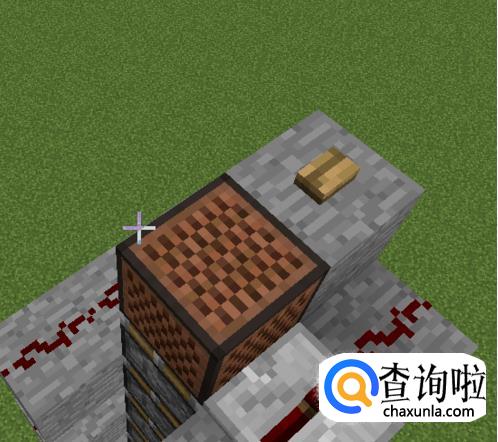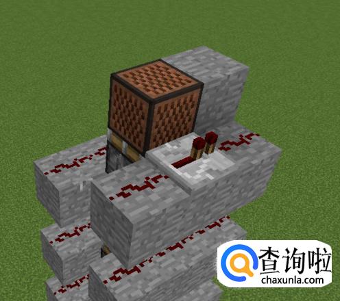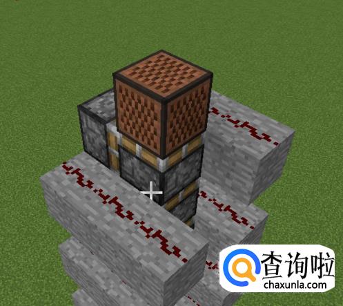 音符盒右侧中间的红石打掉,放红石中继器。音符盒后方放任意一个方块。