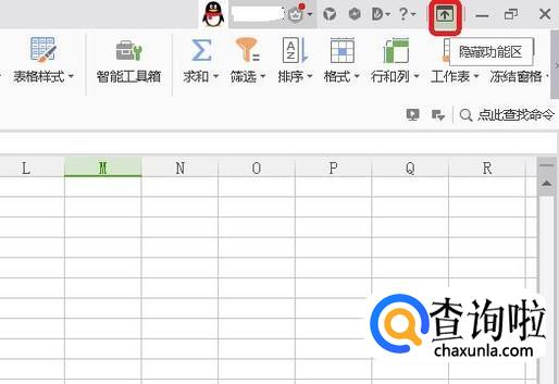 此时,我们点击表格右上角的“隐藏功能区”图标,如图所示,此时图标是灰色的。