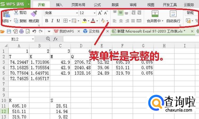 首先,我们任意打开一个有内容的WPS表格来演示。此时,菜单栏是完整的。