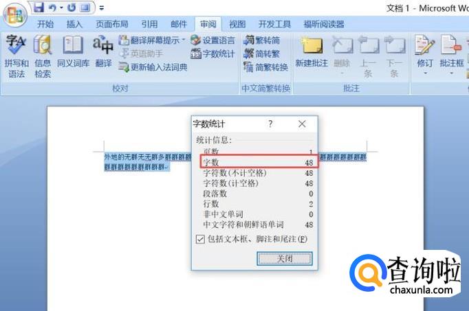 结果如图所示,这样就统计出来字数了,字数为48个,还是比较容易的,相信大家现在都会统计字数了。