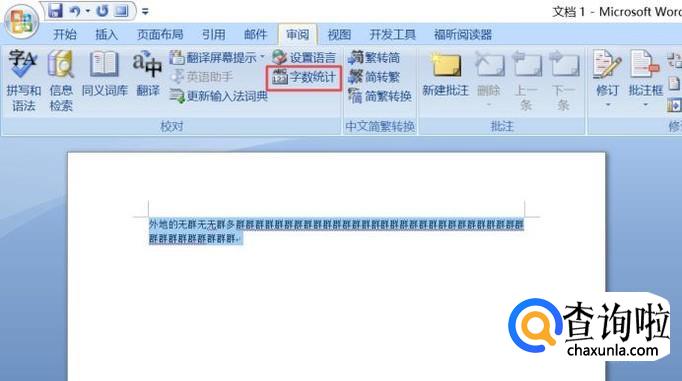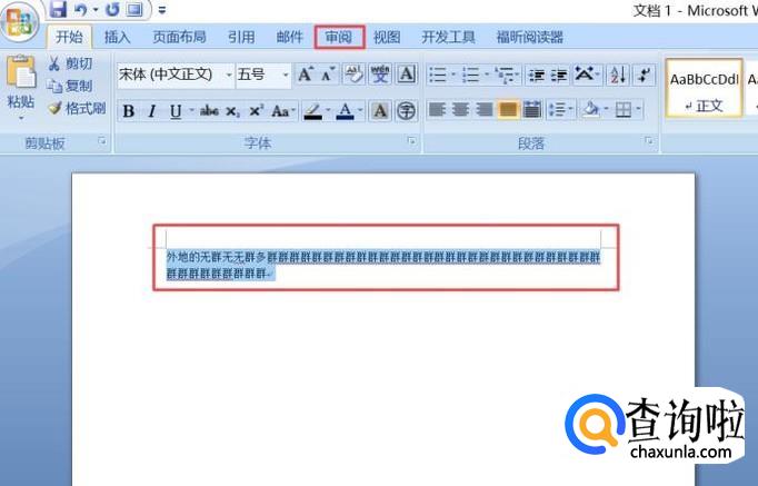 然后我们选中所有的文字,之后点击审阅;