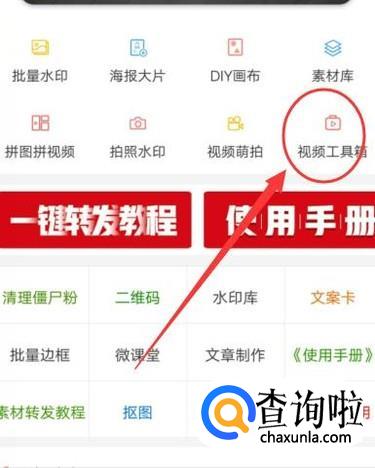 在主页面,点击“视频工具箱”,进入下一页面。