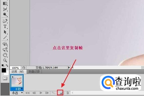接下来就是制作动画效果了,我们点击工具栏的“窗口”-“动画”,然后在左下角的动画帧复制一帧;