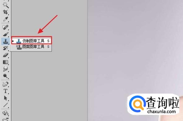 目前我们可以看到美女的双眼是静态的睁开状态,假如我们想让右侧的眼睛形成动态的眨眼效果,那么首先在左侧工具里找到“仿制印章工具”,如下图;