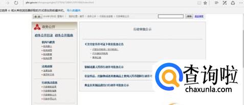 然后,点击左边行政执法信息下的行政审批公示,如下图。