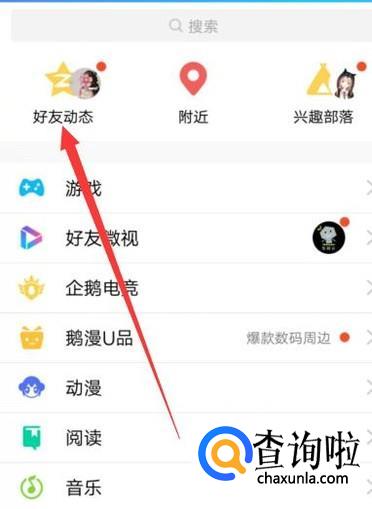 打开手机QQ,找到“动态”,点击并进入,如图所示。