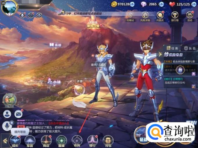玩家想要更换上场的圣斗士,首先点击主页下方的【布阵】按键。