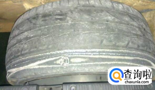 轮胎花纹、凹槽磨平,轮胎上有凸起,证明轮胎的皮已经磨得很薄了,千万要换轮胎才能开车出门,不然开车过程中轮胎受到挤压会爆炸的。