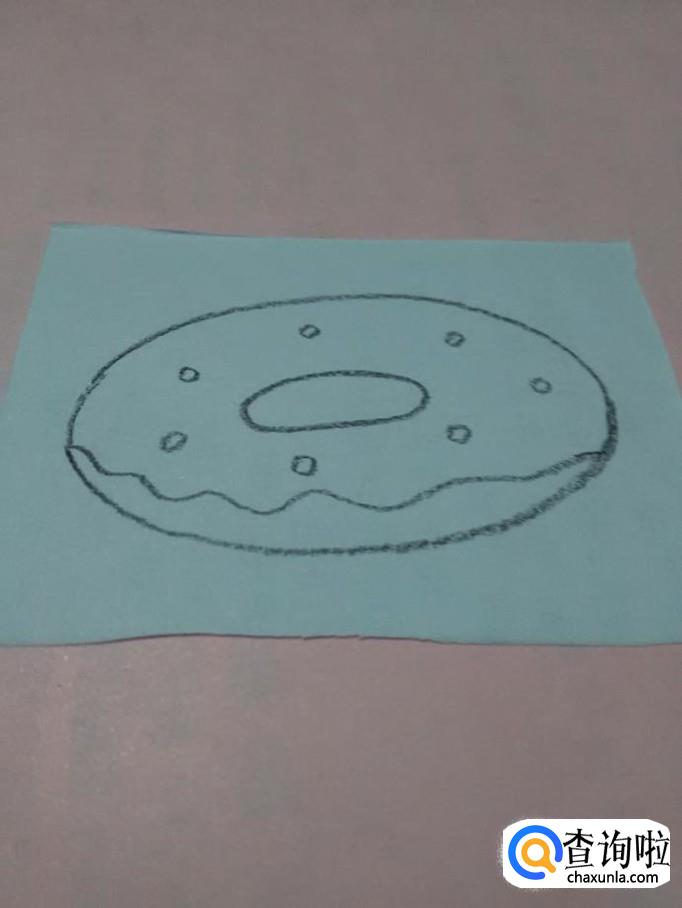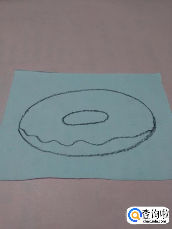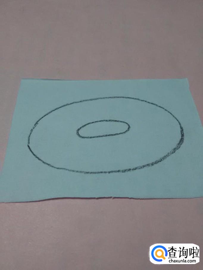 先用黑笔在纸上画一大一小两个椭圆形,两个椭圆形之间的部分,就是甜甜圈。